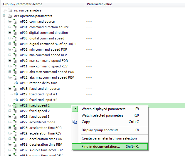 Along with FAQ documentation, you can right-click on any drive parameter and look it up in the application manual.